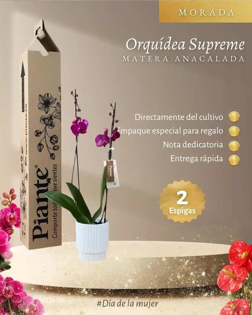 Dale un toque especial a cualquier espacio con nuestra Orquídea Supreme, una planta elegante, delicada y perfecta para decorar salas, oficinas, escritorios o sorprender con un regalo lleno de vida. 💐 Flores exóticas y sofisticadas. 🌿 Tamaño ideal para cualquier ambiente. ✨ Seleccionadas cuidadosamente para garantizar frescura y excelente presentación. El color puede variar según el estado de floración, haciendo que cada planta sea única. Podrás recibir tonalidades blancas, rosadas, fucsias, amarillas o combinaciones naturales, según disponibilidad y proceso natural de la flor. 📸 La fotografía es imagen de referencia. El color puede variar según disponibilidad y etapa de floración. 🌺 Un detalle hermoso, natural y lleno de elegancia.