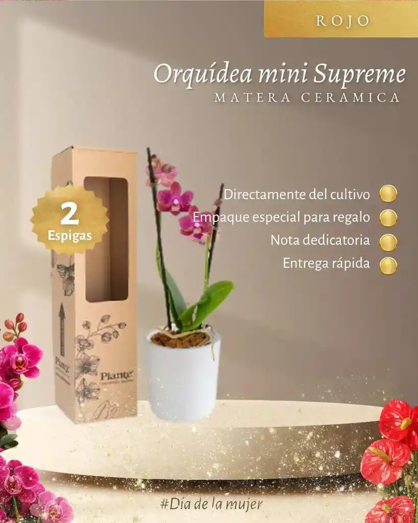 Una planta natural ideal para dar un toque decorativo con estilo. Su presentación en cerámica realza el producto haciendo que luzca más elegante y resistente, perfecta para interiores, oficinas o como detalle para regalo. El color de la flor puede variar según el estado de floración.