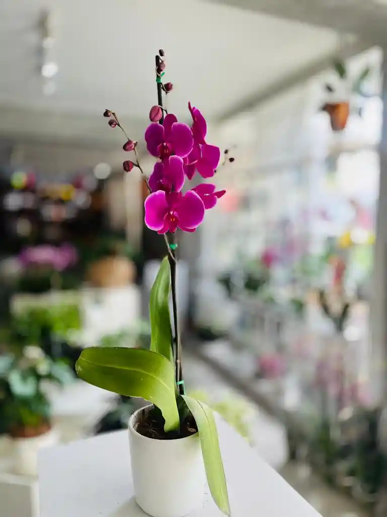 Orquídea Phalaenopsis Morada de Una Vara en Maceta Blanca | Regalo Natural y Sofisticado a Domicilio Hermosa orquídea Phalaenopsis en tono Morado, una combinación delicada entre rosado y coral que transmite calidez, armonía y elegancia. Sus flores suaves y luminosas la convierten en un regalo ideal para expresar cariño, gratitud y buenos deseos. Viene presentada en una maceta blanca cilíndrica de diseño minimalista, cuidadosamente armada y lista para regalar. Es una opción perfecta para quienes buscan un detalle natural, elegante y duradero, ideal para envío inmediato a domicilio. 🌸 Características del arreglo Orquídea Phalaenopsis natural Una vara floral Flores tono Morado Maceta blanca incluida Presentación moderna y elegante Lista para regalar Ideal para interiores 🎁 Perfecto para: Cumpleaños Aniversarios Detalles especiales Regalos románticos Regalos corporativos Envíos de flores y plantas a domicilio 🌿 Cuidados del arreglo Luz: Luz indirecta brillante Riego: Moderado, 1 vez por semana Ambiente: Interior Duración: Flores de larga duración con cuidados básicos Compra esta orquídea Phalaenopsis salmón de Una varas y recíbela a domicilio con una presentación elegante, ideal para llenar cualquier espacio de vida, color y armonía.