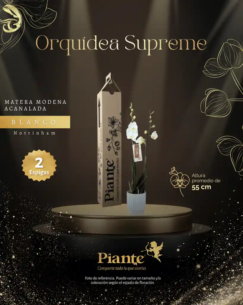 Nuestra Orquídea Supreme es una planta de categoría superior, seleccionada cuidadosamente por su excelente desarrollo, calidad floral y presentación impecable. Es ideal para quienes buscan una opción sofisticada y de alto impacto visual en decoración natural. Se presenta en una matera de cerámica blanca acanalada , un diseño elegante y atemporal que aporta luminosidad, armonía y estilo a cualquier espacio. Su acabado acanalado realza la textura y convierte esta presentación en una pieza decorativa versátil, perfecta para ambientes modernos, clásicos o minimalistas. Esta combinación logra un equilibrio ideal entre naturaleza y diseño, convirtiéndola en una excelente opción para el hogar, la oficina o como regalo especial.