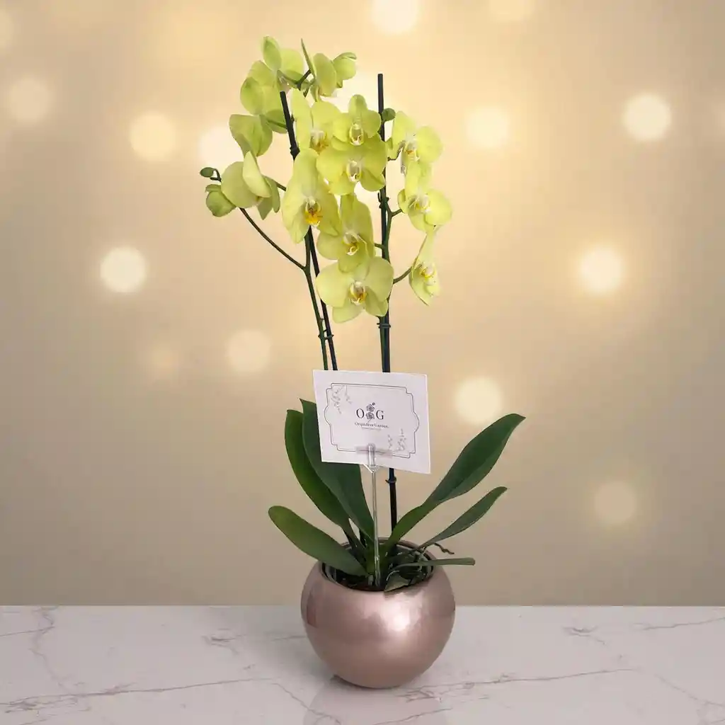 Orquídeas Amarillas base Ceramica+ empacadas para la ocasión