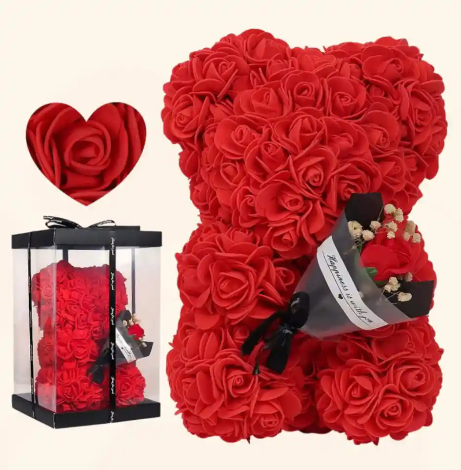 Hermoso oso de rosas con ramo 29CM Caja de lujo