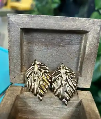 Aretes de topo en forma de hoja con textura en alto relieve. Material: acero