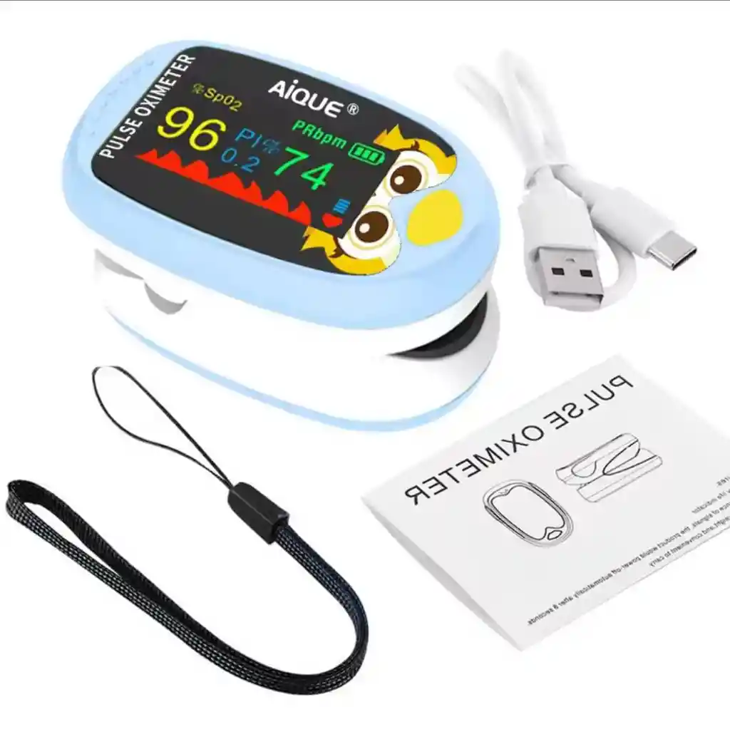 Oxímetro de pulso AiQUE con diseño de búho animado. Recargable, ideal para medir la saturación de oxígeno en sangre en niños y adultos. Pantalla SPO2 TFT.