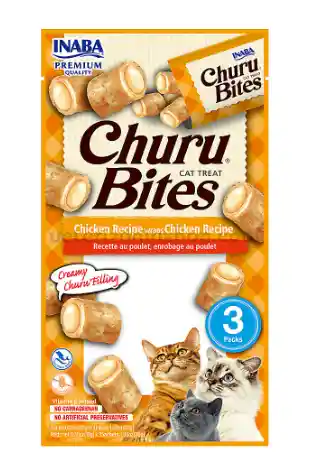 INABA Churu Bites - Golosinas para gatos envueltas en pollo horneado suave y masticable con centros sabrosos churu, Receta de pollo