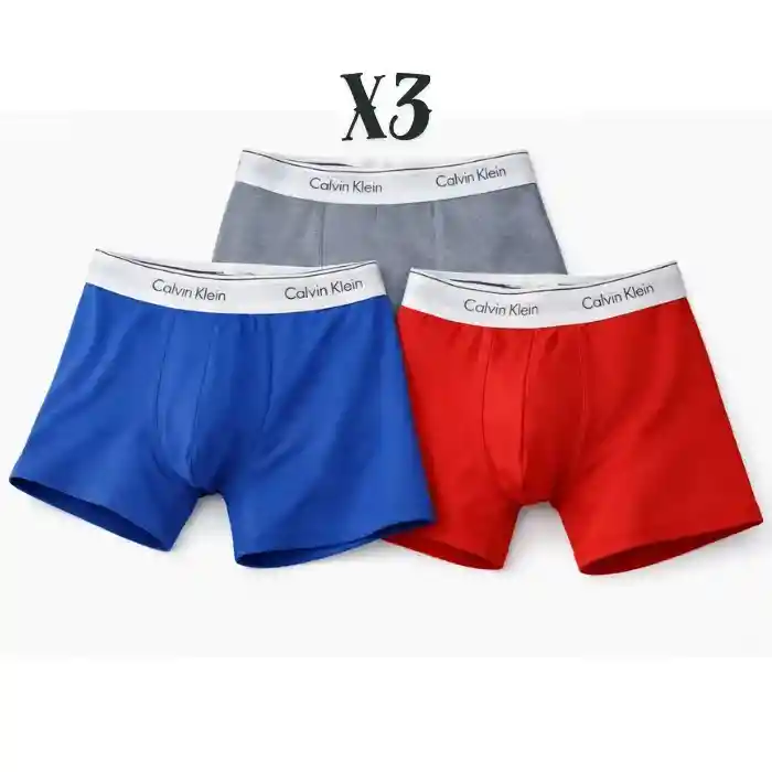 NO SON PRODUCTOS DE MARCA ORIGINAL. Renueva tu flow interior con este combo de 3 bóxers Calvin Klein diseñados para hombres que saben lo que significa comodidad, estilo y actitud. Fabricados en licra elástica de alta calidad, estos bóxers se adaptan perfectamente a tu cuerpo, brindando suavidad al tacto, frescura y libertad de movimiento durante todo el día. Su ajuste ergonómico resalta tu figura y ofrece un soporte firme sin perder ligereza. El resorte con el logo Calvin Klein (pretina) le da un toque moderno y urbano, con acabados que reflejan estilo premium y detalle en cada costura. -Importante: Los bóxers llegan surtidos en colores y diseños de pretina, combinando tonos clásicos, intensos y vibrantes. Cada pack es único y refleja diferentes estilos de la línea CK. -Detalles del combo: • Material: Licra elástica de alta calidad. • Talla disponible: XXL. • Contenido: 3 bóxers Calvin Klein surtidos (colores y diseños de pretina variados). • Cuidados: Lava con prendas similares y deja secar al sol. Perfectos para el uso diario, entrenar, trabajar o simplemente sentirte seguro, fresco y con flow. Este combo no solo te viste, te da actitud