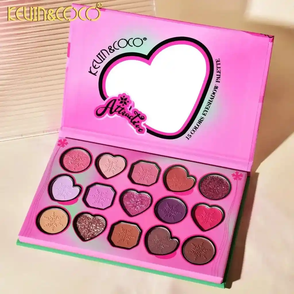 🌸 Paleta De Sombras De Ojos – Atractiva de Kevin & Coco 🌸 ✨ ¡15 tonos irresistibles para looks únicos y radiantes! ✨ 🎨 Colores vibrantes, mates y satinados, fáciles de difuminar. 💖 Textura suave y pigmentación increíble. ✅ Ideal para crear maquillajes naturales o glam. 📦 Diseño atractivo y práctico para llevar a todos lados. 💎 ¡Dale vida a tu mirada con esta paleta súper versátil! 💎