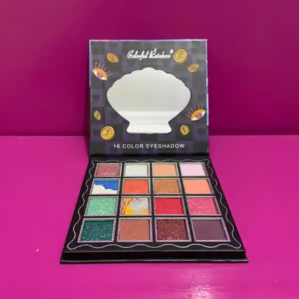 Paleta de Sombras "Colorful Rainbow" – 16 Tonos: Esta paleta de sombras es una explosión de color y texturas, ideal para quienes buscan versatilidad y un toque de fantasía en su maquillaje. Lleva tu creatividad al siguiente nivel con esta colección vibrante de 16 pigmentos diseñados para crear desde looks naturales de día hasta maquillajes artísticos y audaces. Con una mezcla equilibrada de acabados, esta paleta es una pieza esencial para cualquier amante del maquillaje. Características Principales: - Variedad de Acabados: Incluye una selección de mates suaves, shimmers brillantes y glitters prensados para añadir profundidad y luz a tu mirada. - Gama Cromática Versátil: Desde neutros cálidos y marrones profundos hasta azules eléctricos, verdes vibrantes y rojos intensos. - Diseño Único: Cuenta con sombras especiales con efectos marmoleados y bicolores (como el azul con blanco) que permiten crear mezclas personalizadas con una sola aplicación. - Empaque Temático: Presentada en un estuche elegante con un diseño de tablero de ajedrez en tonos oscuros, decorado con detalles de ojos, monedas doradas y un espejo integrado en forma de concha de mar.