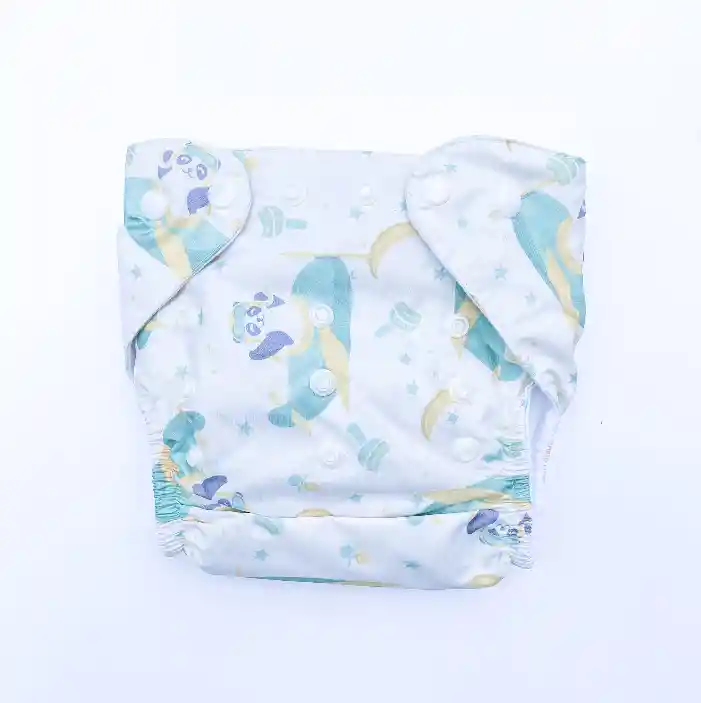 Estos pañales reusables y multitalla tienen 3 telas. En la parte externa tienen una tela semi impermeable, en el medio una 100% impermeable y en la parte interna (la que entra en contacto con la colita el bebé) tienen una tela suave, blanca e hipoalergénica. Cambia de posición los broches para ajustar o expandir la talla.