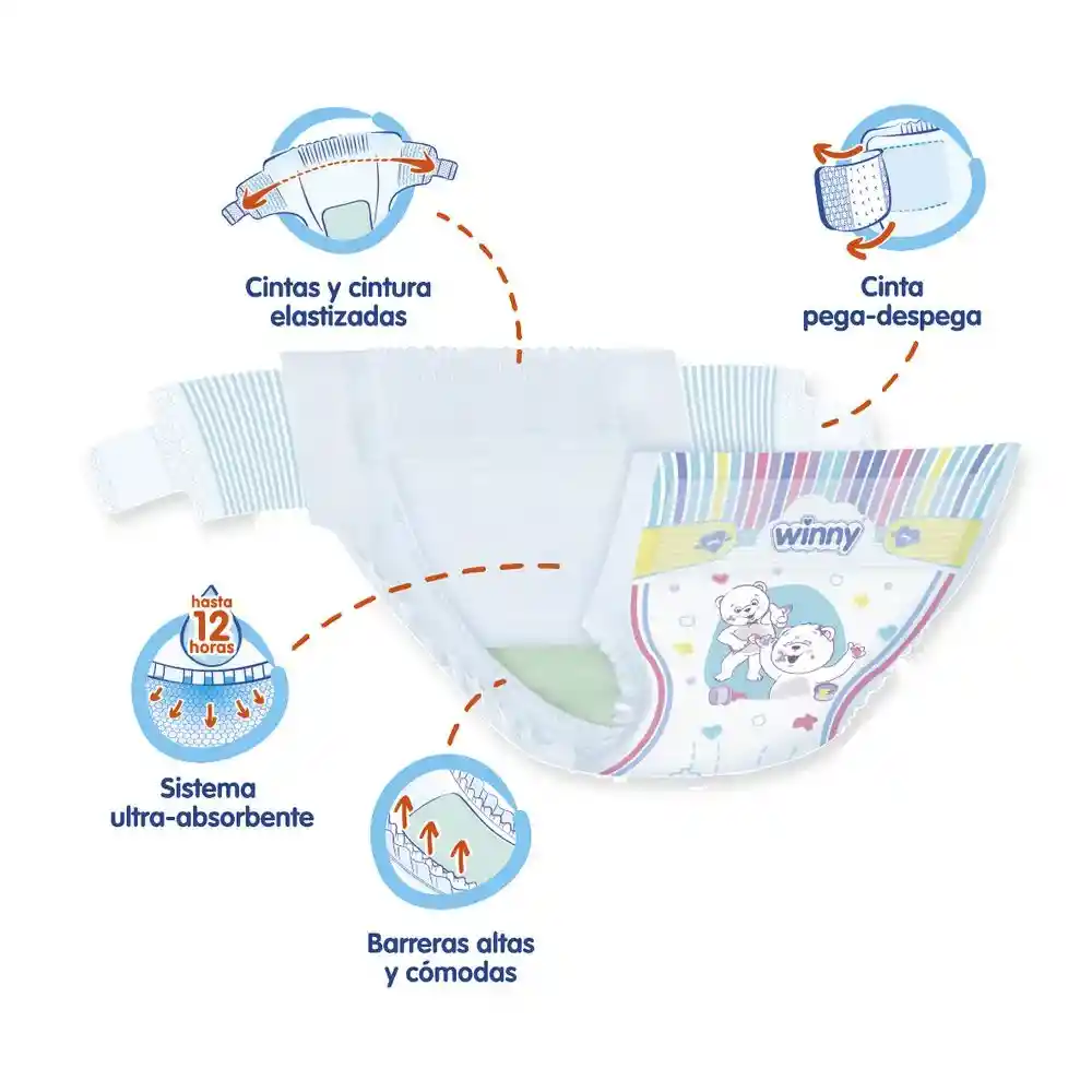 El pañal Wini está diseñado para brindar a tu bebé la máxima comodidad y protección durante todo el día.