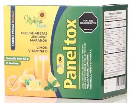 Paneltox Día 25 Porciones 375g es tu aliado natural para fortalecer la respuesta del cuerpo frente a los síntomas gripales. Este suplemento en polvo combina panela pulverizada, extractos orgánicos y vitamina C, diseñados para ofrecerte un apoyo natural y efectivo desde el primer consumo. Su fórmula incluye jengibre en polvo, reconocido por sus propiedades antiinflamatorias, antioxidantes y calmantes para la garganta, junto con pulpa de limón y naranja en polvo, que aportan un delicioso sabor cítrico y una dosis natural de vitamina C. Esta vitamina es fundamental para acortar levemente la duración de los resfriados y fortalecer tu sistema inmunológico. Además, la panela pulverizada aporta energía natural y un sabor auténtico, mientras que el ácido ascórbico actúa como antioxidante protegiendo tus células del estrés oxidativo. El toque de mentol ofrece una sensación refrescante y ayuda a descongestionar la nariz, brindándote confort inmediato. Paneltox está endulzado con sucralosa, lo que permite disfrutar de su sabor panela limón sin preocuparte por calorías extras. Aunque no es un medicamento, su combinación de ingredientes naturales está pensada para apoyar suavemente tu bienestar en temporadas frías o cuando sientas molestias respiratorias. Ideal para toda la familia, este producto es seguro y fácil de incorporar en tu rutina diaria. Disfruta la frescura, el confort y el respaldo antioxidante que Paneltox ofrece, cuidando de ti y de los tuyos de manera natural. Características principales: - 25 porciones de 375g con ingredientes naturales. - Fórmula con jengibre, pulpa de limón y naranja, panela y vitamina C. - Sensación refrescante gracias al mentol. - Endulzado con sucralosa para menos calorías. - Apoyo natural a la función inmunitaria y alivio suave de síntomas gripales. - Producto seguro para consumo familiar. Registra tu bienestar con Paneltox y siente el respaldo natural que tu cuerpo merece.