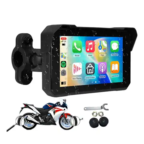 Pantalla GPS para Moto 5" Podofo con CarPlay, Android Auto y Bluetooth - Resistente al Agua Mejora tu experiencia en carretera con esta pantalla GPS multifuncional de 5 pulgadas especialmente diseñada para motocicletas. Compatible con Apple CarPlay y Android Auto, ofrece una interfaz intuitiva, conectividad avanzada y alta resistencia a las condiciones climáticas. Características principales: Pantalla IPS de 5 pulgadas con resolución 854*480, ideal para visualizar mapas y funciones bajo luz solar directa. Compatible con Apple CarPlay y Android Auto Doble Bluetooth para emparejar simultáneamente el teléfono y el casco o intercomunicador. Control por voz mediante Siri o Google Assistant para una conducción más segura sin quitar las manos del manubrio. Resistente al agua y al polvo con certificación IPX7, ideal para todo tipo de clima. Montaje universal para manubrio con instalación sencilla. Compatible con audio externo a través de Bluetooth. Permite reproducción de música, navegación GPS, llamadas, mensajes y más desde el celular. Especificaciones técnicas: Tipo de pantalla: IPS de alta definición Resolución: 854*480 píxeles Brillo: hasta 1000 nits Ángulo de visión: 180 grados CPU: Quad-core Cortex-A53 Conectividad: Wi-Fi, Bluetooth 5.0 dual, ranura para tarjeta TF, entrada AV-in