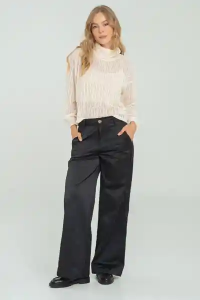 En Tejido Plano Toque Seda Tiro Alto Ajusta Con Botón y Cierre Bolsillos en Laterales y Parche en Posterior Silueta Amplia.