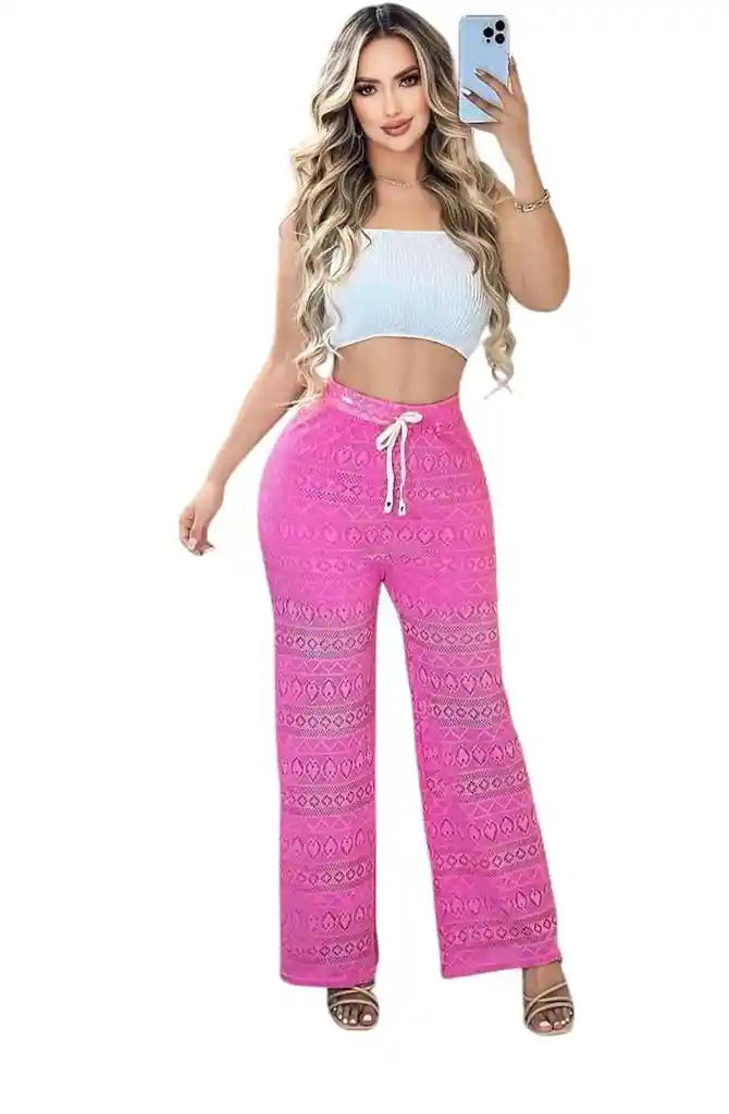 Pantalón Palazzo bota ancha con cintura elástica de amarre con cordón ,en ojalillo,encaje con short interno El dibujo del encaje puede variar de posición y forma
