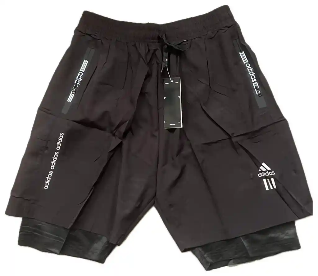 Pantaloneta deportiva hombre, material impermeable con licra interior, cremallera en los bolsillos color negro, talla XL.