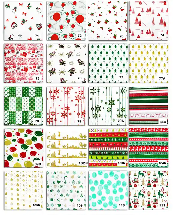Celofan Estampado De Navidad (papel Cristal), tenemos variedad de diseños, por interno se te envian las fotos de los que tenemos disponibles