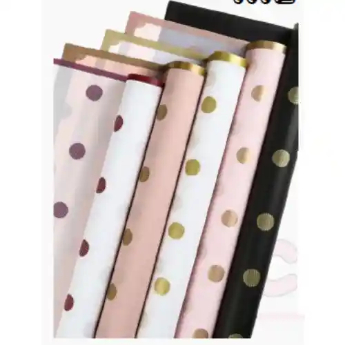PAPEL COREANO POLKA, DISPONIBLE EN COLORES NEGRO, DORADO, ROSADO Y BLANCO. tamaño 58*58 cm. Papel impermeable: el papel de floristería está hecho de material impermeable de calidad duradero, resistente y resistente al agua.