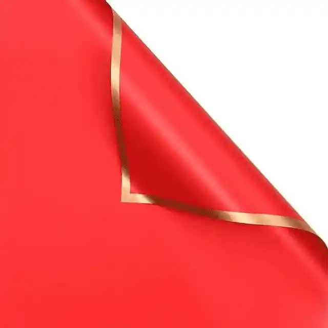 🎁 Papel Coreano Color Rojo Con Borde Color Dorado Ideal para envolver flores y regalos. Resistente al agua (impermeable), flexible y fácil de moldear. El papel coreano es un material fino, suave y versátil, famoso por su uso en envoltorios de regalos y arreglos florales, destacando por ser semi-impermeable, resistente y estético en diversos colores y diseños, desde traslúcido hasta opaco, perfecto para manualidades y decoración. Se Envían 2 Pliegos Medida de cada pliego es de: 57cm x 57cm