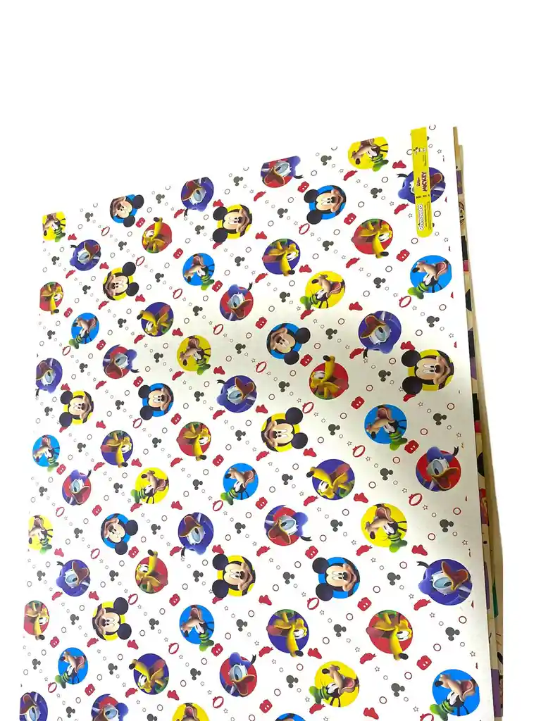 Medio Pliego de Papel decorativo Tipo Craft con personajes. Su diseño colorido y nostálgico es ideal para envolver regalos infantiles o temáticos.