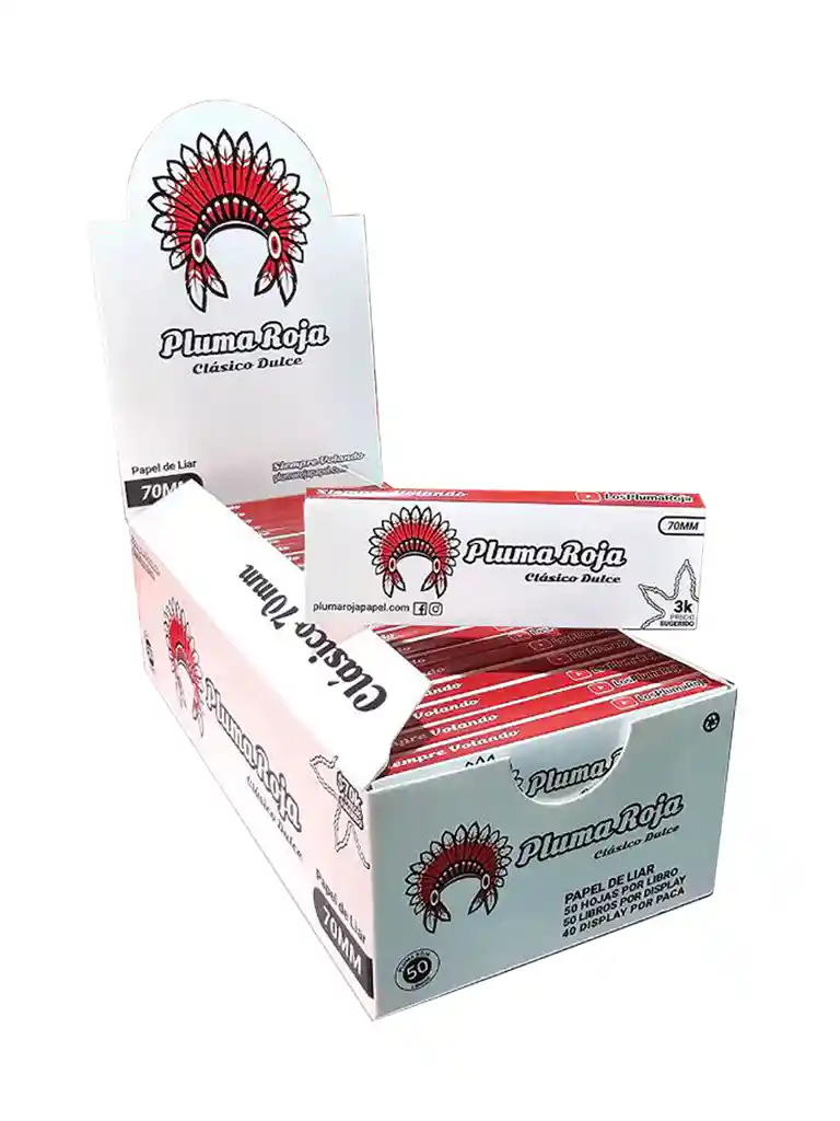 suavidad al fumar. Elaborado con papel ultrafino, ofrece una combustión lenta y uniforme que permite disfrutar mejor cada calada sin alterar el sabor natural del contenido. Su tamaño 70 mm lo hace práctico y cómodo para el uso diario, mientras que su textura facilita el enrollado, incluso para quienes buscan un armado perfecto sin esfuerzo. El ligero toque dulce característico de Pluma Roja aporta una experiencia más agradable y tradicional. Ideal para uso legal, este papel es una opción confiable para quienes valoran la calidad, el estilo clásico y un rendimiento constante en cada unidad. Perfecto para consumo personal o para puntos de venta que buscan un producto reconocido y de alta rotación. 🔥📄✨