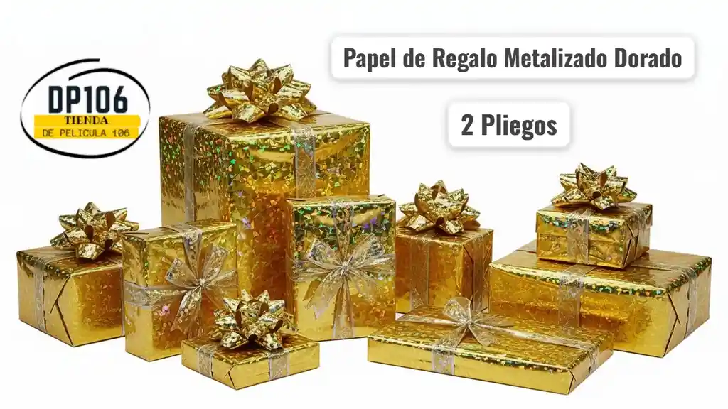 2 pliegos de papel de regalo metalizado color dorado