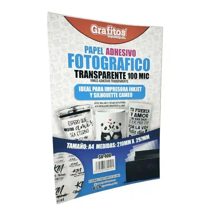 Papel fotografico adhesivo transparente A4 de 100 micras