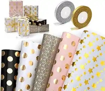 El papel de regalo es un tipo de papel decorativo diseñado específicamente para envolver obsequios, añadiendo un toque estético y de misterio a un presente. Se caracteriza por su amplia variedad de colores, diseños y texturas, adaptándose a diferentes ocasiones y preferencias.