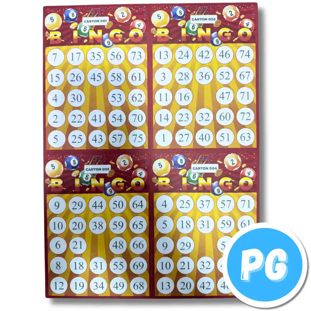Paquete De Cartones De Bingo X200 Unds Bazar (34x25 Centimetros Hoja x4)