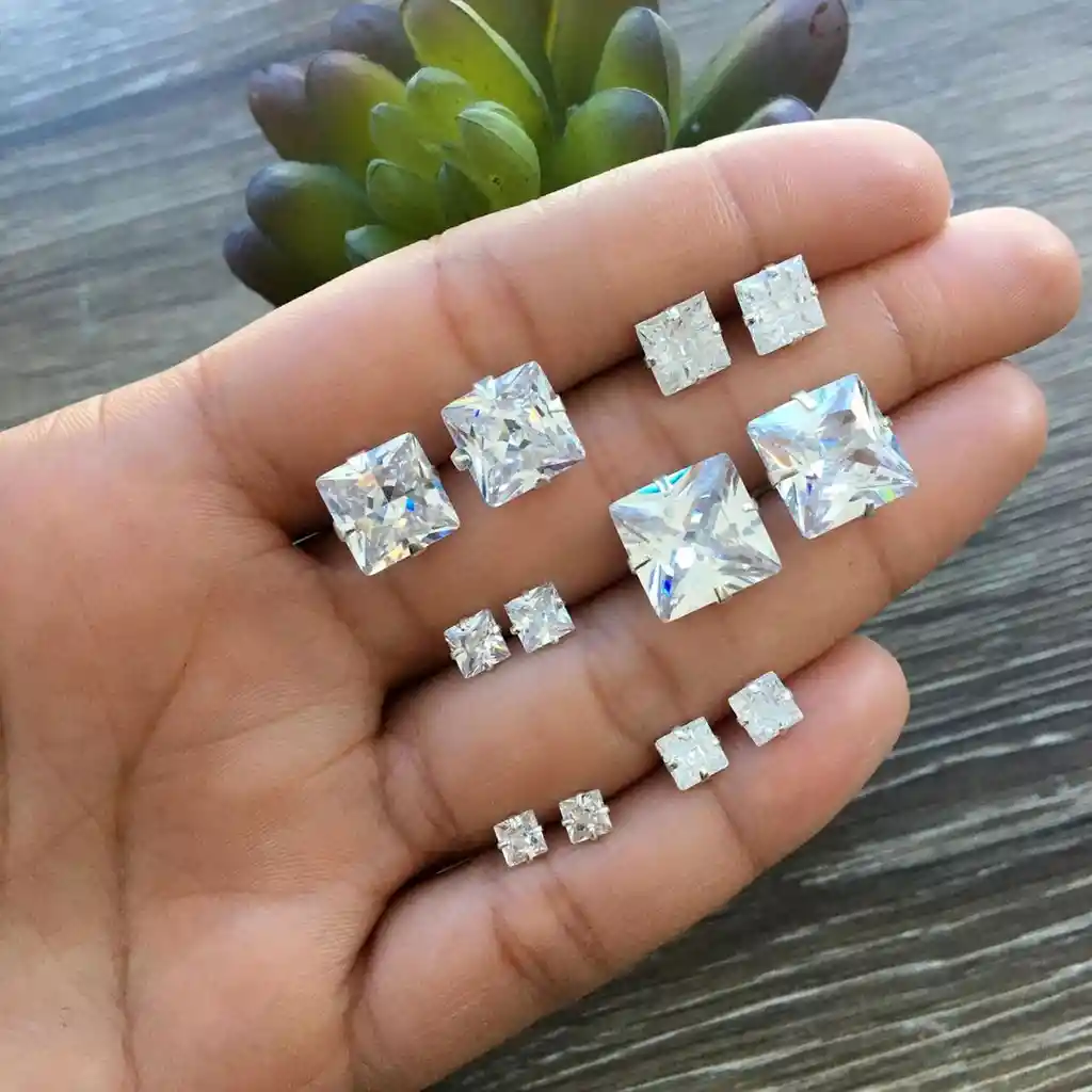 ARETES CON CIRCON DE 6MM CUADRADO Unidades: 2 Material: Acero quirúrgico inoxidable 316L (Hipoalergénico). Diseño de la piedra: Cuadrado Color de la piedra: Blanco Diámetro de la piedra: 6mm Tipo de cierre: Ajustable Uso Ideal: Oreja