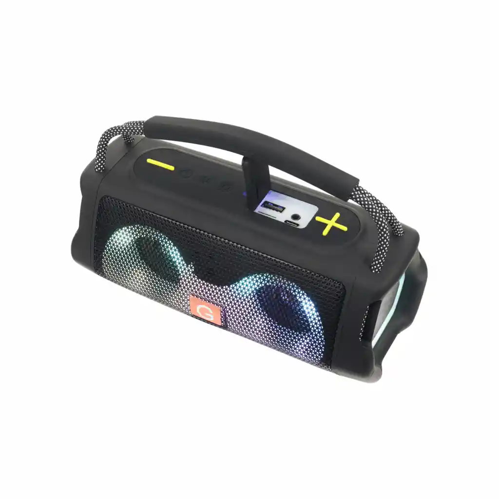 Potencia y sonido compacto para llevar a todas partes. Disfruta de tu música favorita sin cables y con gran calidad. * Potencia de salida: 10W (2 altavoces de 5W) * Batería recargable de 1800 mAh con duración de hasta 5 horas * Tiempo de carga: 4 horas | Voltaje de entrada: 5V * Conectividad: Bluetooth, USB, tarjeta TF, radio FM * Alcance inalámbrico: más de 10 metros * Tamaño del parlante: 45 mm * Material: ABS con rejilla metálica Perfecto para disfrutar música en casa, en reuniones o donde quieras.