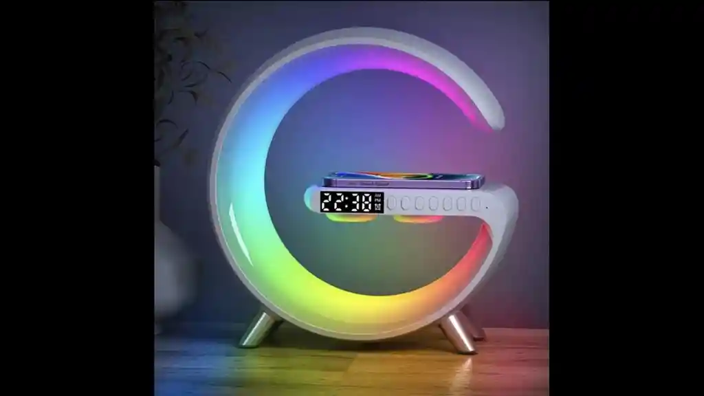 Altavoz inalámbrico multifuncional: este altavoz de carga inalámbrica no solo tiene un excelente rendimiento de calidad de sonido, sino que también integra una variedad de funciones prácticas. El altavoz con lámpara G se conecta de forma inalámbrica a cualquier dispositivo compatible, como teléfonos, tabletas y computadoras, lo que te permite disfrutar de música de alta calidad en cualquier momento y en cualquier lugar Luces de ambiente coloridas: esta lámpara de ambiente con cargador inalámbrico tiene 13 tipos de luces de ambiente coloridas integradas, y puedes elegir diferentes efectos de iluminación de acuerdo a tus preferencias y escenas. Ya sea una fiesta, reunión familiar o tiempo de relajación, la lámpara con cargador inalámbrico puede crear un ambiente agradable