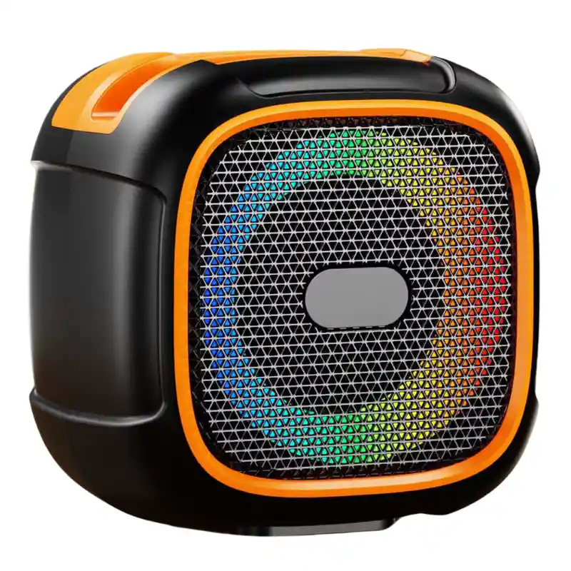 Parlante Bluetooth Portátil RGB con Luces LED, USB, AUX, TF y Batería Recargable Parlante portátil compacto con diseño tipo cubo y luces LED RGB integradas. Ofrece sonido envolvente 360° ideal para espacios pequeños y medianos. Cuenta con conexión Bluetooth estable y múltiples opciones de reproducción: USB, tarjeta TF, entrada AUX y puerto Type-C para carga. Incluye botones superiores de control, batería recargable y correa para fácil transporte. Ideal para casa, oficina, viajes o actividades al aire libre.