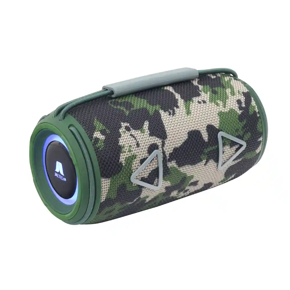 Speaker Bluetooth 16W – Diseño Camuflado con Luces RGB - Bluetooth 5.3 para una conexión rápida y estable hasta 10m. - Potente sonido de 16W con graves mejorados. - Batería de 1500 mAh para largas horas de reproducción. - Iluminación RGB con luces rítmicas para un ambiente dinámico. - Múltiples opciones de conexión: Bluetooth, Aux 3.5mm, Tarjeta TF y USB. - Incluye radio FM y función TWS para emparejar dos bocinas. - Estilo camuflado, perfecto para cualquier aventura. ¡Lleva tu música a donde quieras con potencia y estilo!