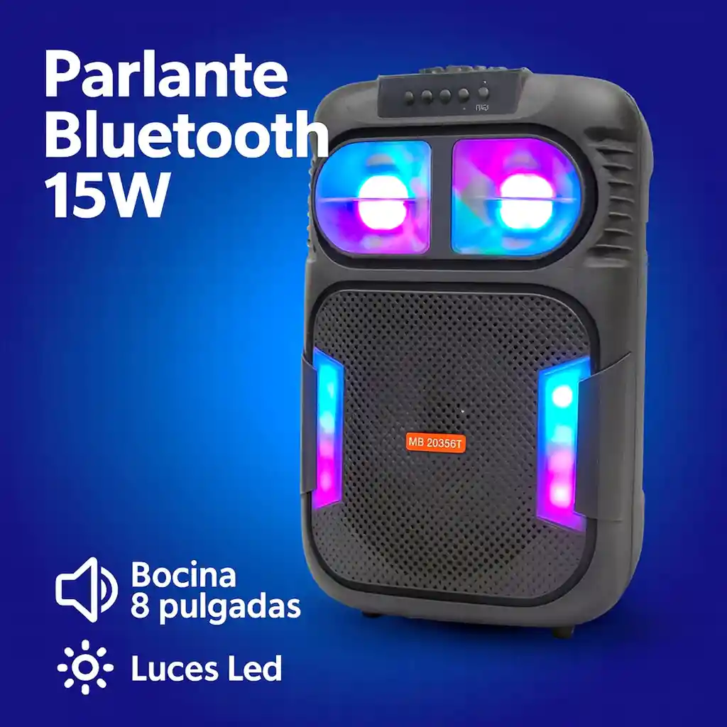 🔊 Parlante Karaoke MS-2065BT – 8” | 15W | Bluetooth | RGB El MS-2065BT es un parlante portátil con diseño moderno y llamativo, pensado para llenar de música y energía cualquier espacio. Con su sonido potente de 25W, luces LED RGB integradas y funciones de karaoke, es ideal para fiestas, reuniones, actividades al aire libre o simplemente disfrutar de tu música favorita en casa 🏠🎉. Características principales: 🌈 Show de luces RGB: panel frontal con efectos luminosos que acompañan la música para un ambiente más divertido. 🔋 Batería recargable de alta capacidad: integrada y desmontable, con puerto de carga USB Tipo-C ⚡. 📻 Radio FM integrada para escuchar emisoras sin necesidad de otros dispositivos. 📱 Conexión Bluetooth: compatible con celulares, tablets y otros equipos inalámbricos. 🎶 Reproducción USB: conecta una memoria flash y escucha tu música fácilmente. 🎤 Entrada de micrófono para karaoke, ideal para cantar y animar tus reuniones. 📦 Incluye: Parlante MS-2065BT + Cable de carga USB Tipo-C. 👜 Diseño práctico: incluye manija de transporte para llevarlo a todas partes. Especificaciones técnicas: 🔊 Unidad de parlante: 8 pulgadas. ⚡ Potencia de salida: 15W. 🔋 Fuente de alimentación: batería de litio recargable. 📏 Diseño portátil con asa integrada. 🎼 Funciones: Bluetooth, USB, Radio FM, entrada de micrófono, luces RGB. Usos recomendados: 🎤 Karaoke en casa o reuniones. 🏕️ Actividades al aire libre: picnics, paseos, camping. 🏠 Altavoz para el hogar: música, podcasts, radio. 🎉 Fiestas y celebraciones con efectos de luz y gran sonido. Con el Parlante Karaoke MS-2065BT tendrás potencia, diversión y portabilidad en un solo equipo. Perfecto para quienes buscan un sonido envolvente con estilo y versatilidad 🌟🔊.