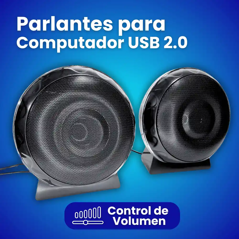 ✔️ Funcionales, compactos y listos para usar Un set de parlantes diseñado para mejorar el audio de tu computador sin complicaciones. Ideales para estudio, trabajo, clases virtuales y entretenimiento diario, con instalación inmediata y consumo mínimo. Para quien quiere sonido claro sin pagar de más. 📌 Descripción del producto Estos parlantes USB 2.0 ofrecen una experiencia estable y equilibrada para uso cotidiano. Se alimentan directamente desde el puerto USB, eliminando adaptadores adicionales, y cuentan con conexión auxiliar 3.5 mm para compatibilidad universal. Su tamaño compacto permite ubicarlos fácilmente en cualquier escritorio, incluso en espacios reducidos. Conecta, ajusta el volumen y listo. ⭐ Características principales · Sistema estéreo 2.0 · Alimentación directa por USB · Conexión de audio 3.5 mm · Control de volumen integrado en el cable · Diseño compacto y estable · Instalación Plug & Play (sin drivers) · Bajo consumo energético 📦 ¿Qué incluye la caja? · Par de parlantes · Cable USB de alimentación · Cable auxiliar 3.5 mm integrado ⚙️ Especificaciones técnicas · Tipo: Sistema 2.0 · Potencia: 3W x 2 · Respuesta de frecuencia: 90Hz – 20kHz · Conexión: Jack 3.5 mm · Alimentación: USB 5V · Control: Rueda de volumen en cable · Material: Plástico ABS · Compatibilidad: PC, laptop, Windows, macOS, dispositivos con salida 3.5 mm 🎯 Ideal para · Estudiantes y trabajo remoto · Oficinas y escritorios pequeños · Clases virtuales y videollamadas · Música, videos y contenido diario · Usuarios que buscan algo práctico y económico
