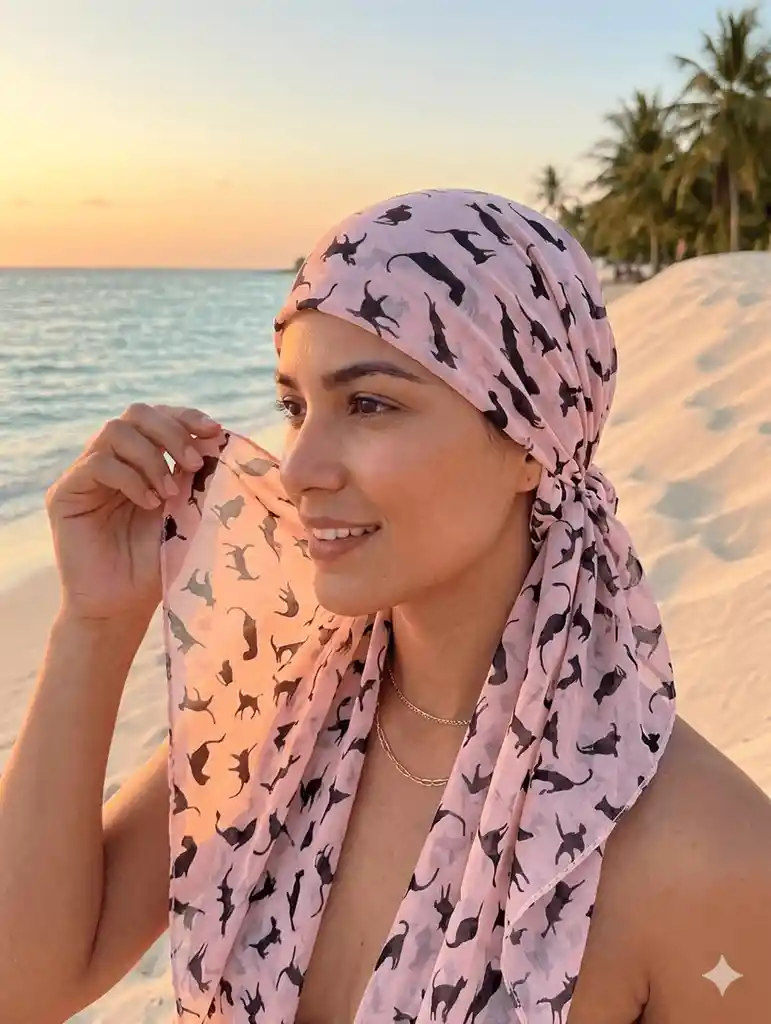 Pashmina, accesorio tipo bufanda, pañoleta o salida de baño.