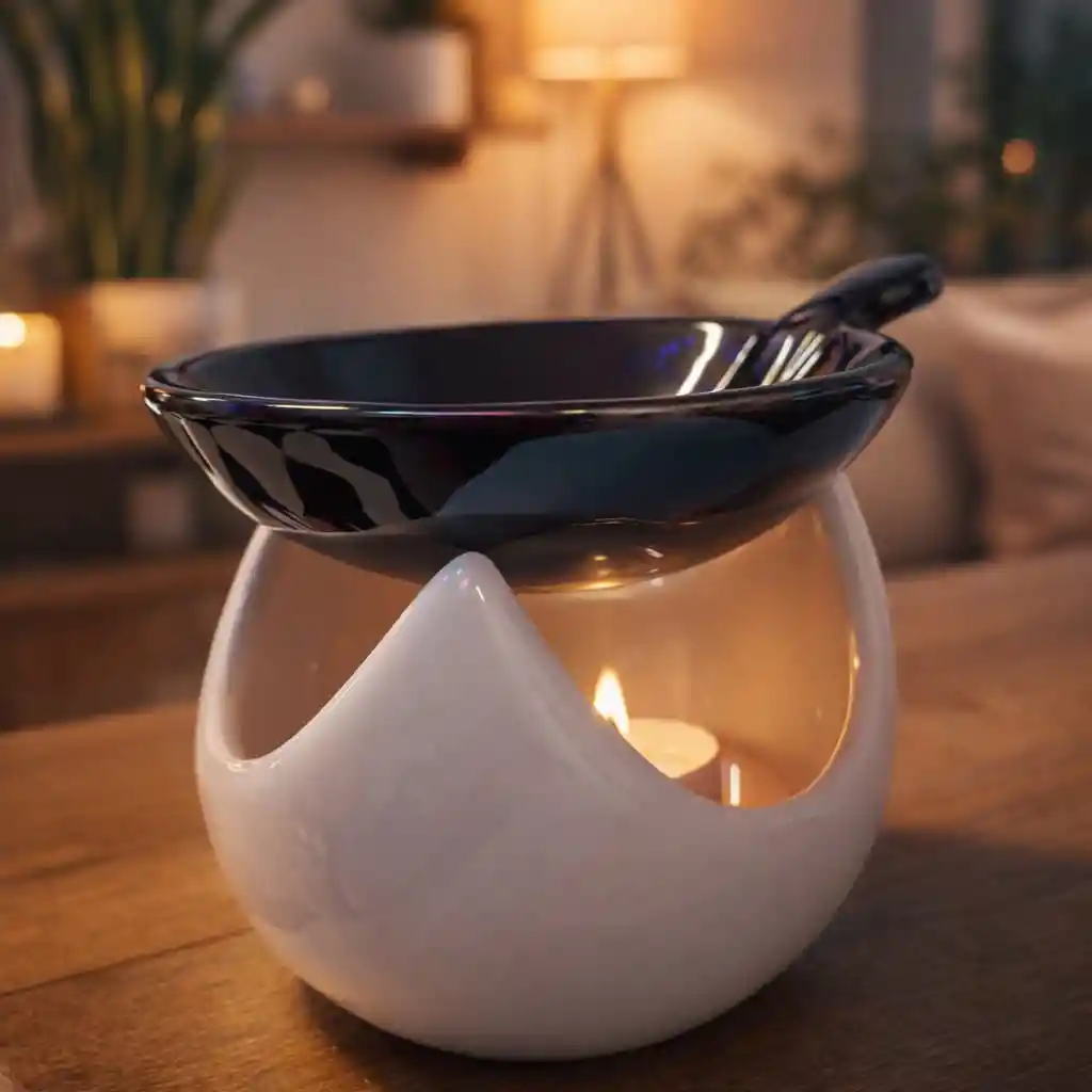 Pebetero Aromático, es perfecto para perfumar y ambientar cualquier espacio; solo agrega agua en la parte superior, disuelve aproximadamente con 15 gotas de tu esencia favorita y enciende una velita en la parte inferior para liberar el aroma lentamente. Incluye 2 velitas, NO incluye la esencia. Ideal para crear ambientes relajantes en casa u oficina.