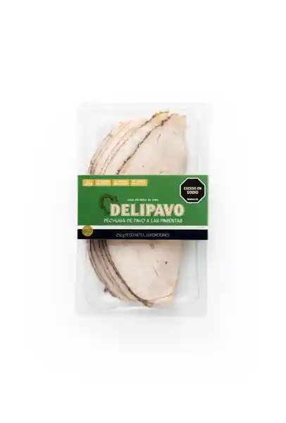 Media Pechuga de Pavo Sin Hueso y Sin Piel, Adobada a Mano, Con Una Mezcla Generosa de Granos de Pimienta y Asada en el Horno. La Particular Fusión de Pimientas Hace de Esta Pechuga Una Explosión de Sabor Que te Encantará. Sin Gluten, Sin Cerdo, Sin Harinas, Sin Colores ni Sabores Artificiales.
