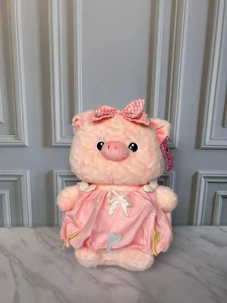 Peluche de Cerdito en color rosa, con un tamaño aproximado de 28 cm. Pidelo con mensaje personalizado!