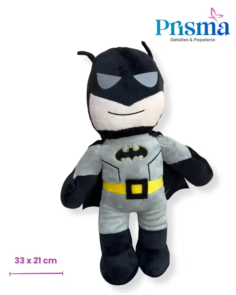 Peluche de batman con capa, medidas: 33 cm alto x 21 cm ancho.