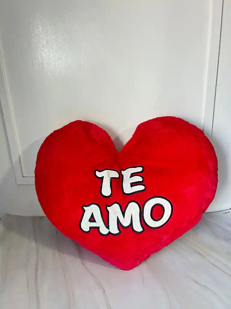 Peluche color rojo en forma de corazón con frase "TE AMO" de 50cm.