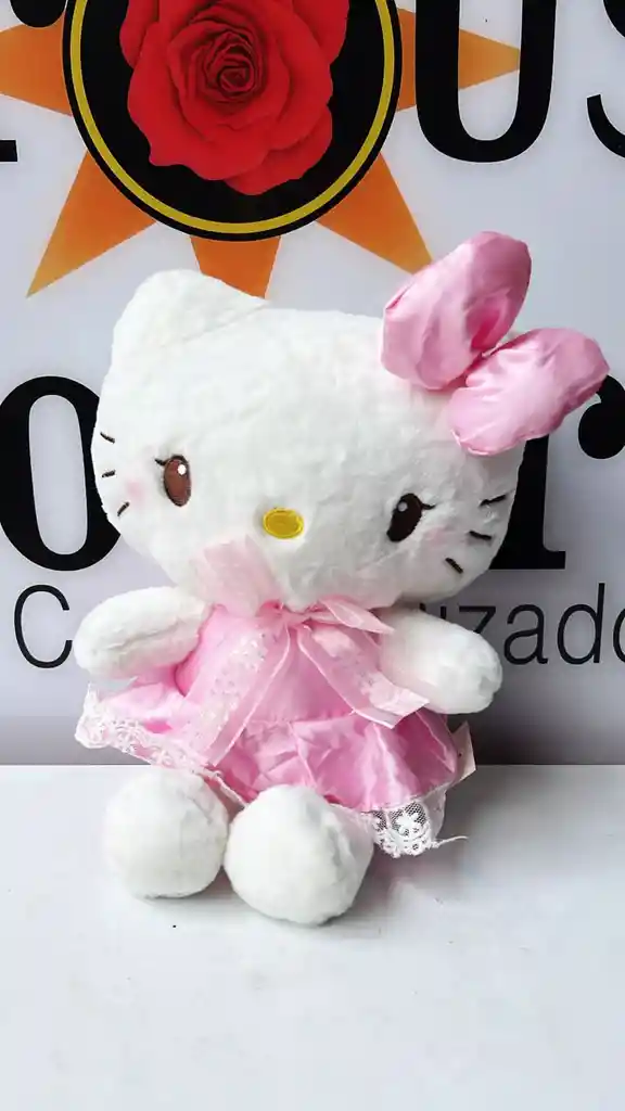 Muñeca de peluche blanca, suave y esponjosa, con vestido rosado, encaje y lazo decorativo. Ideal para regalar o como adorno tierno y delicado. 💗🧸