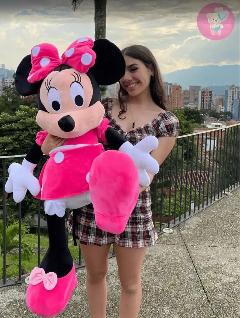 Hermoso peluche de Minie Mouse Extra Gigante con una medida de 1,30 metros de longitud completa aproximada. Tiene un hermoso pelaje extra suave Nuestros peluches son fabricados con materiales de primera calidad, relleno de algodón siliconado antialergico suave que no se deforma ni endurece con el tiempo y brinda sensación de suavidad al tacto.