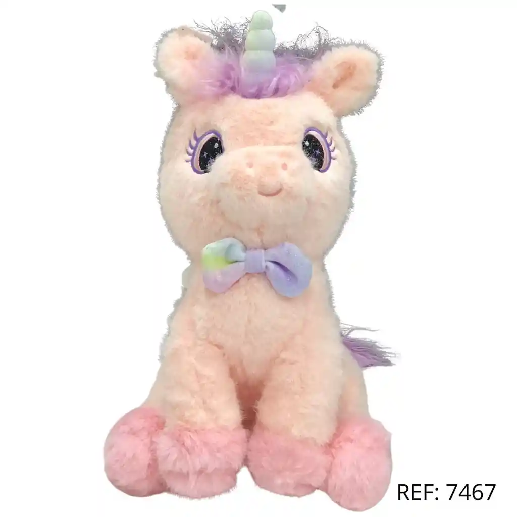 Unicornio de peluche 23x39 cm, suave y colorido con moño pastel, ideal para regalar ternura y magia