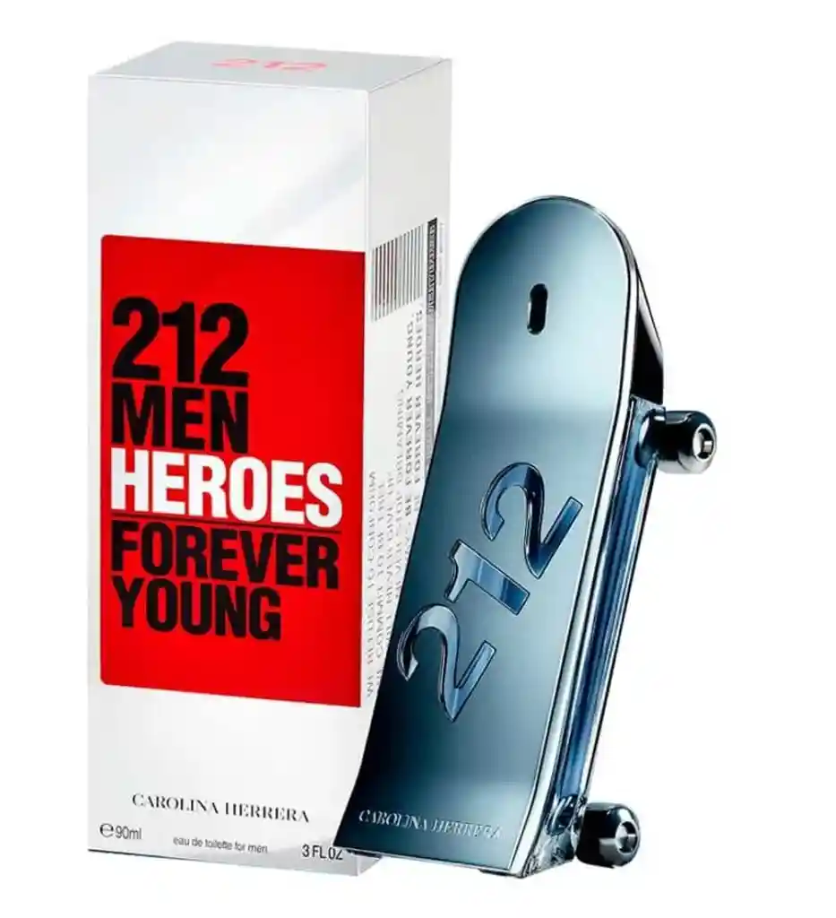 212 Héroes Forever Young es un perfume con notas de frambuesa y mandarina. 212 Héroes reinventa los fougères con un nuevo género olfativo: fougère frutal y amaderado. Las notas de salida son pera, cannabis y jengibre; las notas de corazón son geranio y salvia; las notas de fondo son almizcle y cuero.