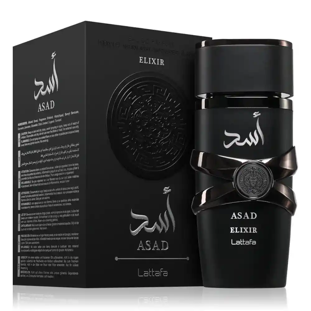 Perfume Asad Elixir Lattafa Original Locion 100 Ml Asad Elixir es una fragancia audaz, intensa y poderosamente masculina, creada para hombres que imponen presencia. Esta es una fragancia llena de sensualidad, seducción y pasión masculina que no dejará impasibles a los que te rodean. Comienza con una mezcla ardiente de pimienta rosa, azafrán y pomelo: una entrada vigorosa y enérgica que capta la atención al instante. El corazón se despliega con un profundo tabaco, la cálida madera de cedro y la suave vainilla, aportando riqueza, fuerza y un encanto adictivo. A medida que el aroma se asienta, la base revela una sofisticada mezcla de pachulí, olíbano, cachemira y ámbar seco: ahumada, amaderada e irresistiblemente carismática. Con cuerpo, seguro y duradero, Asad Elixir es una fragancia exclusiva para hombres que quieren que su fragancia hable antes que ellos. Notas olfativas: Notas de salida: Pimienta rosa, azafrán, pomelo. Notas de corazón: Vainilla, flores blancas y rosa. Notas de fondo: Pachulí, olíbano, cachemira, ámbar seco.