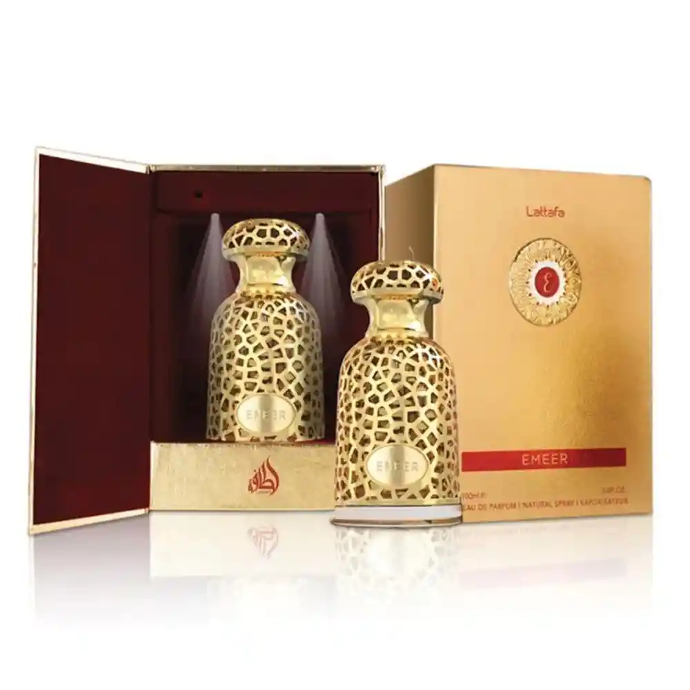 Perfume Emeer Lattafa Original Locion 100 Ml Descubre el arte de la sofisticación con Emeer de Lattafa, una fragancia diseñada para quienes dejan huella. Este perfume oriental unisex envuelve tus sentidos en un aura de lujo, misterio y distinción. Desde la primera nota, Emeer te cautiva con una explosión aromática rica y envolvente, donde se mezclan especias cálidas, maderas exóticas y un fondo ambarado que deja una estela inolvidable. Ideal para ocasiones especiales o para elevar tu día a día con un toque de elegancia. Notas olfativas: - Notas de Salida: Limón (lima ácida), bergamota, esclarea y bayas de enebro - Notas de Corazón: Té blanco, sándalo, cardamomo y olíbano - Notas de Fondo: Ámbar gris, madera de cedro, cachemira y pachulí.