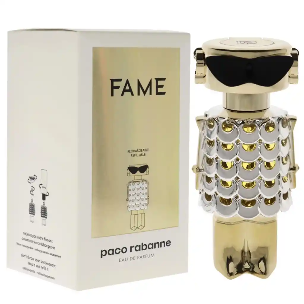 Descubre FAME, el codiciado nuevo perfume femenino de Paco Rabanne. Capturando el irresistible espíritu parisino de la mujer Rabanne, FAME rinde homenaje a una nueva era de feminidad. Diseñador: Paco Rabanne Año de introducción: 2022 Tipo: EDP Categoría: Mujeres Notas de fragancia: Juguetonas. Sensual. Facultada. La quintaesencia del lujo vanguardista, este perfume es una mezcla de jazmín excepcionalmente puro, mango suculento y un incienso cremoso y adictivamente sensual. Un aroma verdaderamente irresistible que irradia alegría y una sensualidad audaz. FAME es un perfume vegano fabricado en Francia con un 90% de origen natural. 100% elaborado en Grasse con ingredientes sostenibles.