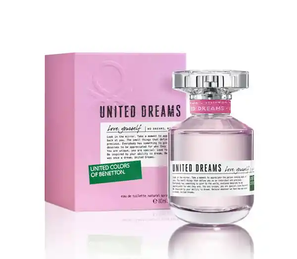 Deléitate con el fascinante aroma de la fragancia United Dreams Love Yourself, una deslumbrante creación de la casa de diseño Benetton. Una fragancia femenina, sensual y moderna que anima a sentirse única y especial. Soñar para cambiar el mundo. Este es el verdadero objetivo de United Dreams. Una atrevida propuesta que United Colors of Benetton convierte en perfume y con la que pretende inspirar al mundo a creer en una fuerza extraordinaria capaz de conseguir lo imposible: la fuerza de los sueños. Con un diseño original y único, inspirado en un frasco de laboratorio, se dibuja la botella de el frasco de Unite Dreams. En total consonancia con el estilo de United Colors of Benetton, de líneas modernas y simples, el frasco de Unite Dreams es tan especial como el mensaje que contiene. Notas Aromáticas Notas de Salida: Bergamota, Albaricoque, Pera y Frambuesa. Notas de Corazón: Rosa, Jazmín y Fresia. Notas de Fondo: Madera, Ámbar, Musc, Acorde Sándalo.