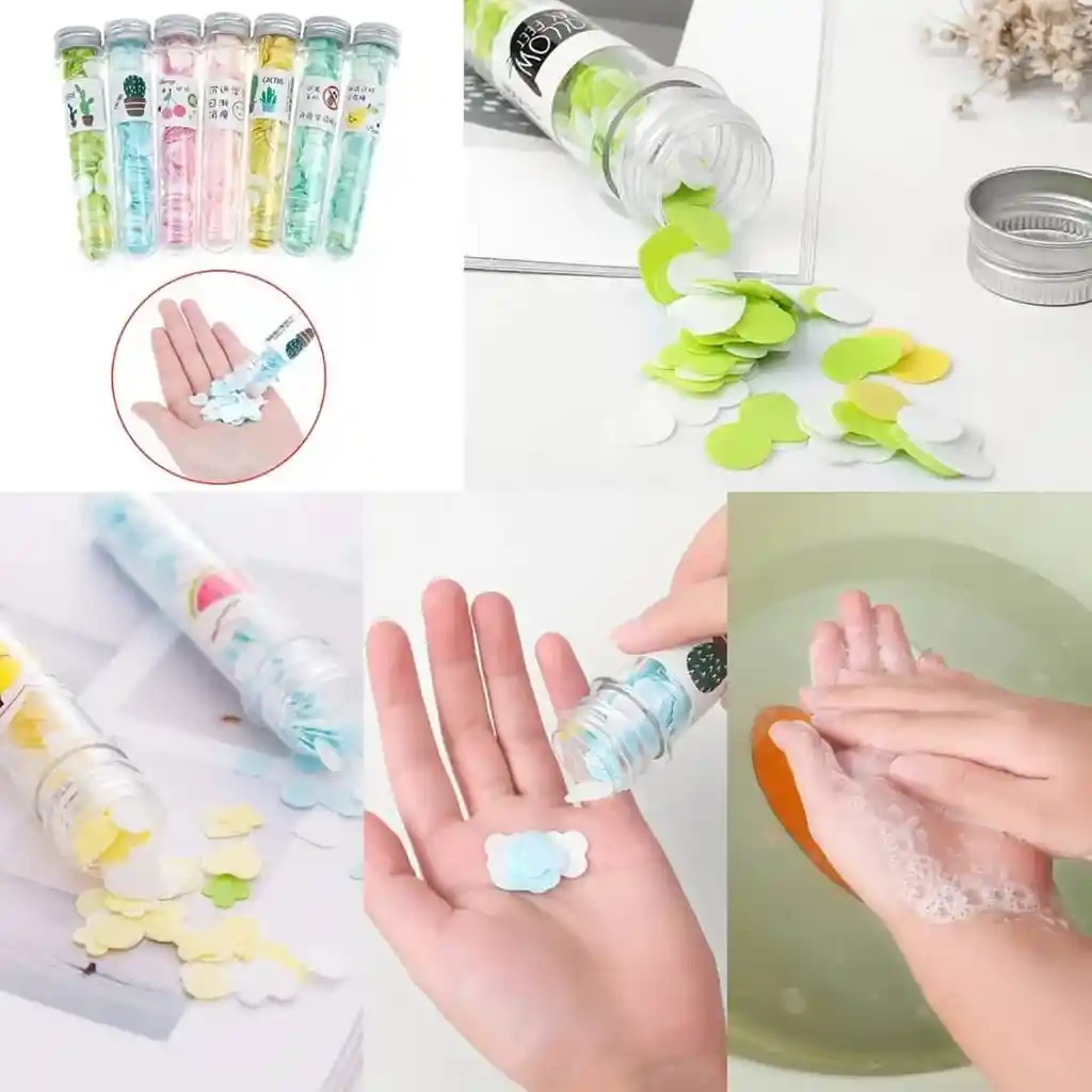 Pétalos de Jabón Surtidos en práctica presentación tipo tubo, ideales para llevar en el bolso, mochila o equipaje de viaje. Cada frasco contiene láminas de jabón en forma de pétalos que se disuelven fácilmente con agua, generando espuma suave y efectiva para una limpieza rápida de manos en cualquier lugar. Compactos, ligeros e higiénicos, son perfectos para oficina, colegio, camping, restaurantes o uso diario fuera de casa. Disponibles en colores y fragancias surtidas, combinan practicidad y diseño, convirtiéndose también en un detalle útil y original para regalar.